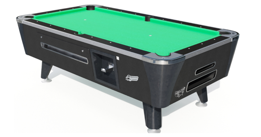 Esta mesa de POOL está disponible en modelos de 6,5, 7 y 8 Pies e incluye un Monedero programable para aceptar la mayoría de las Monedas.